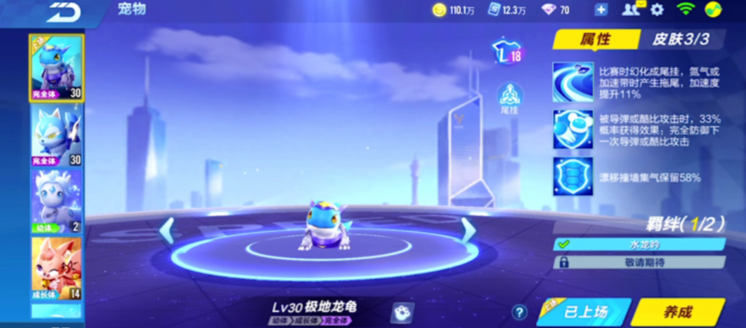 选择合适的宠物能大幅提升胜率。极地龙龟作为常青树级别的领跑宠物,它的二技能能在被导弹或酷比攻击时概率触发完全防御效果,实战中性价比极高。即使没有皮肤和羁绊加成,触发频率依然可观,尤其在对手频繁使用导弹和酷比的对局中表现突出。