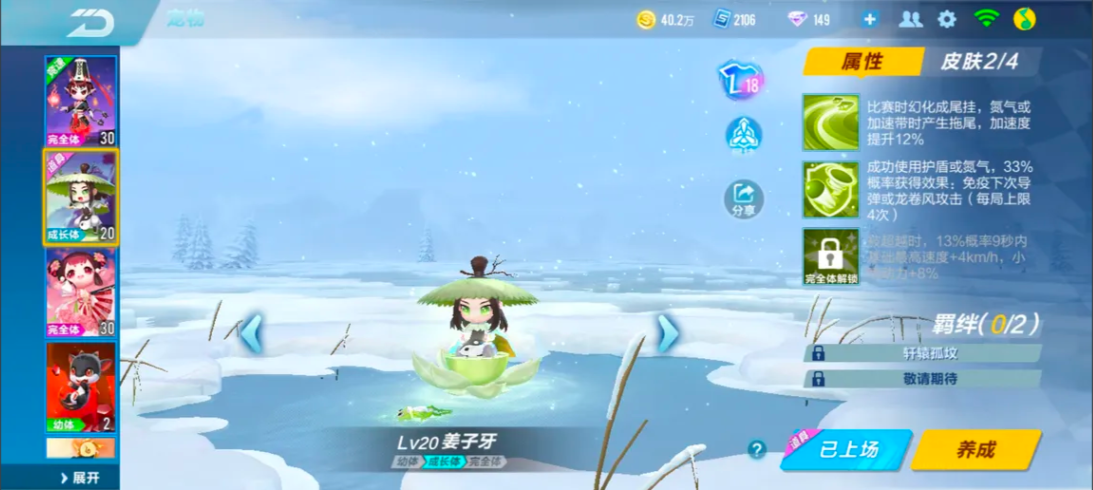 领跑位玩家可以优先考虑姜子牙或拂光掠影·梦羽。姜子牙的特性在使用护盾或氮气时概率免疫下次导弹或龙卷风,但更适合领跑位发挥。拂光掠影·梦羽则通过护盾连续防御提升稳定性,技能触发概率高且操作门槛低。白泽作为点券宠物也值得关注,被超越时概率获得氮气,虽有限制但实战触发频率较高。
