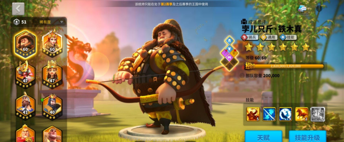 对于资源有限的玩家,需要权衡获取铁木真的成本效益。由于活动获取存在随机性,建议准备充足的宝石储备以提高获取概率。同时要注意,铁木真作为纯骑兵武将,需要配套的骑兵科技和装备支持才能发挥最大战力。如果主玩其他兵种,可能需要重新评估投入产出比。获取后的培养重点应放在技能升级和天赋配置上,推荐混合加点骑兵与技能天赋,强化其机动性和爆发伤害特性。