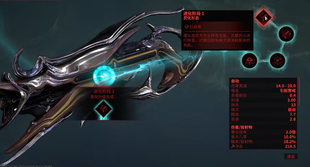 灵化形态的逐枭会变成辐射伤害,对付感染肌腱或机械单位特别有效,但对抗护盾类敌人时稍显吃力。每次进化都需要完成对应的挑战任务,比如用主要模式击杀特定数量敌人或触发灵化形态完成精准击杀。建议在军械库提前查看当前阶段的挑战要求,规划好任务类型和地图。