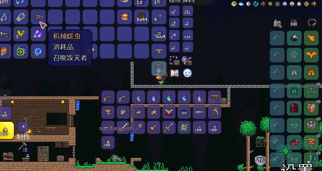 打毁灭者时记得选个好场地,比如搭建一个高台或者长平台,方便咱们灵活走位躲避攻击。装备方面推荐用防御较高的钯金套或秘银套,搭配永夜刃这类高伤害近战武器。战斗过程中优先处理毁灭者召唤的小怪,既能减少干扰又能回血。胜利后除了力量之魂,还会掉落神圣锭,这可是做神圣套装的必备材料,一举两得。