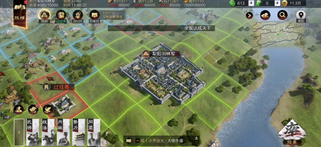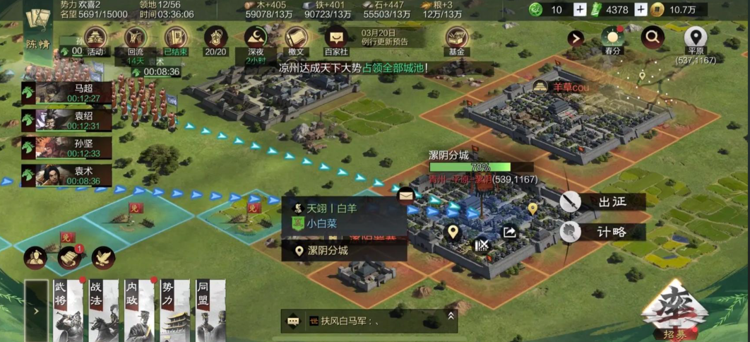 调整守城部队的时候,有几个小细节千万不能忽略。部队的调动和驻守状态是不同的,你把部队派到城外的领地上去站着,那叫驻守,是用来保护周边地块的;而调整城里的守军,属于内部配置。别把正在外面驻守的队伍直接拉回来换将,这样可能会让那块地失去保护。注意武将的体力和士气,刚从远处征召回来的残兵败将,最好先让他们在城里休息恢复一下再安排守城任务。还有啊,城池的校场等级决定了你城里最多能放几支部队,别光顾着换人,结果队伍数超标了,那可就白忙活了。
