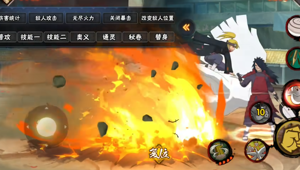 迪达拉拥有多个版本,其中秽土转生版本具备标志性的飞行机制与自爆能力。当角色下方的能量条蓄满后,可以主动激活特殊子技能进入飞天状态,在此状态下普通攻击和技能形态会发生改变,普攻速度提升,一技能变为快速突进的全X轴攻击,二技能则能进行俯冲控制,空中形态极大增强了其压制与生存能力。当血量低于一定比例时,秽土迪达拉可以发动自爆技能,与对手同归于尽并判定为平局,这成为其残血时极具威胁的战术选择。新春限定等版本则通常围绕粘土炮装填机制运作,使用技能会消耗充能,需要主动通过一技能或替身来恢复,从而维持技能循环。