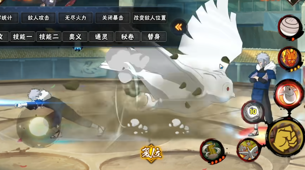 由于其优势在于远程消耗,对抗时应优先选择具备快速突进能力的忍者,抓住他装填粘土或技能后摇的间隙迅速近身。面对在空中飞行的迪达拉时,必须及时使用对空技能或通灵兽尝试将其击落,打断他的飞行节奏。需要特别警惕他的自爆机制,当迪达拉血量较低时,切忌盲目近身强攻,应保留替身术或其他无敌技能以应对其可能的自爆同归于尽。对付他的粘土人偶和地面爆炸物时,灵活的Y轴走位和及时的替身是有效的规避方法。
