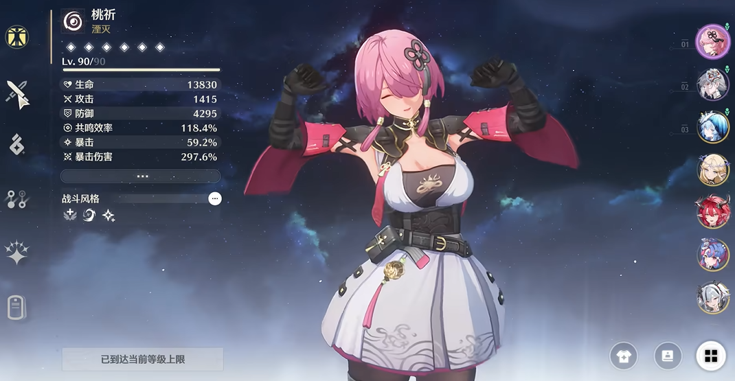 桃祈的功能性定位偏重提供生存保障与为队友创造输出窗口。她的延奏技能千钧能显著提升下一位登场角色的共鸣技能伤害。配队时,通常会以桃祈作为能提供防护和补充伤害的副手,搭配一位主输出角色如卡卡罗或炽霞,以及一位治疗角色如维里奈或白芷,形成攻守兼备的阵容。她独特的减速力场也有利于控制战场节奏。