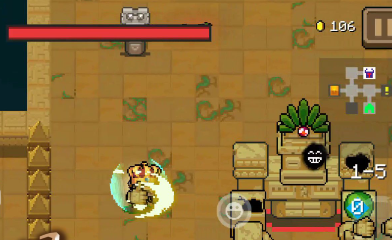 要玩重拳出击这把武器,首先得彻底弄明白它的攻击方式。这把武器源自第一关遗迹场景的远古巨像,你轻点攻击键时,它会打出一记右勾拳,造成8点伤害,这个过程中角色会朝着打拳的方向移动。如果你长按攻击键蓄力,会发现武器竖起个大拇指,这时松开手角色就会以挺快的速度向前猛冲,直到撞上敌人或者墙壁才会停下,这一下撞上去能造成12点伤害。不管是普通一拳还是蓄力冲撞,暴击率都挺高的,有50%呢,暴击时伤害会翻倍,而且蓄力冲撞暴击了还能把敌人打晕一会儿,算是个小控制。不过你得特别冲撞的时候自己是没法自由拐弯的,一头撞到墙上不仅会停下来,角色还会因为冲击掉一点血,所以冲之前最好瞅一眼前面有没有墙。