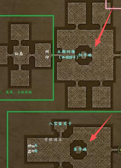 这几颗珠子的具体下落各有不同,你得按着地图房间的顺序慢慢找。比如说中嵩珠,它的位置在嵩字门下面一层的房间里,从初始的出生点出发,先向右走再向下走,在一个房间内就能发现它。而西华珠的获取方式有点特别,需要你先看到五岳的图案之后,再去到下一个州的房间里面才能拿到。其他像东泰珠、南衡珠和北恒珠,也各自分布在不同的墓室或机关房间里,有的需要解开雕字石块的拼图谜题,有的则需要击败房间里驻守的怪物才能拿到手。