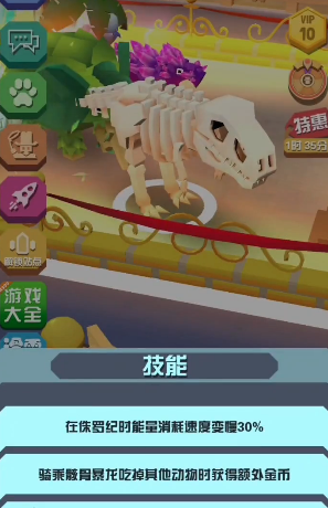要获得骸骨暴龙这个动物,首先需要明确它的获取途径。根据相关信息,骸骨暴龙是游戏中VIP3等级的特殊动物,这意味着它并非通过在常规地图跑酷或完成隐藏条件来解锁,而是与玩家的VIP等级直接挂钩。获取骸骨暴龙的第一步是需要提升你的VIP等级至3级。VIP等级的提升通常与在游戏内的消费累计相关,当你达成VIP3的条件后,骸骨暴龙便会成为你可获得的动物之一。