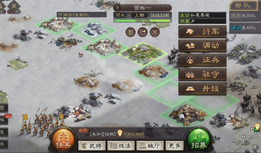 除了作为部队的中转站与提供视野,营帐还具备征兵和恢复士气伤兵的功能,这使其成为持久作战的支撑点。玩家可以将在后方主城或分城生产的兵力调动至前沿营帐,从而实现兵力的快速补充与集结,有效延长了队伍的持续作战能力。合理规划营帐的建造位置与升级节奏,是衡量玩家战略布局能力的重要一环,对于联盟的大规模协同作战尤为关键。