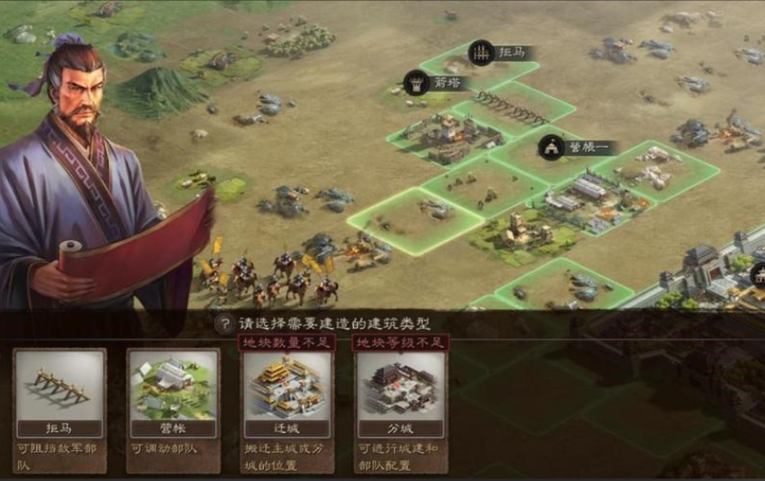 建造营帐需要满足特定的前置条件,玩家需要进入城池的城建发展界面,在守备类建筑中首先点出工程营。工程营的等级直接决定了玩家所能建造的营帐、拒马、箭塔等防御建筑的等级上限,是建造高级营帐的基础。还需要点出军机营建筑,军机营的等级决定了玩家可以在大地图上同时建造的营帐数量上限,通常在发展前期建议将其提升至2级以满足基本需求。完成这些建筑升级后,便可以在己方占领的土地上选择建造营帐。