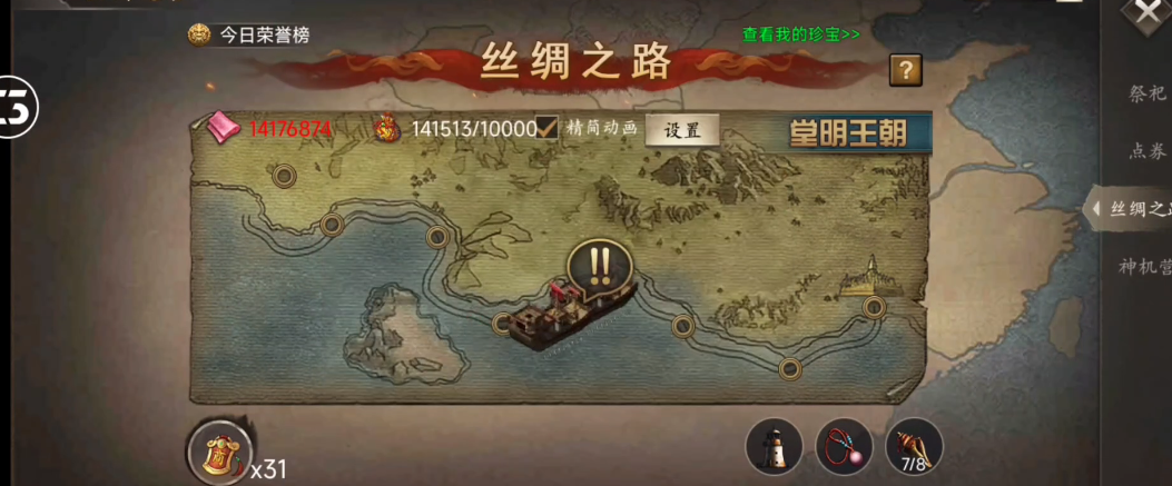 丝绸之路是获取珍宝碎片和资源的重要途径,其核心玩法围绕商队贸易、资源分配与联盟协作展开。开启丝绸之路需满足主城等级要求,通常为150级,同时需确保军队、资源储备及盟友支援到位。解锁后,玩家需在游戏界面找到丝绸之路入口,选择商队并配置护卫军队,启动贸易任务。商队往返过程中可能遭遇敌对玩家掠夺,需及时调度防御。