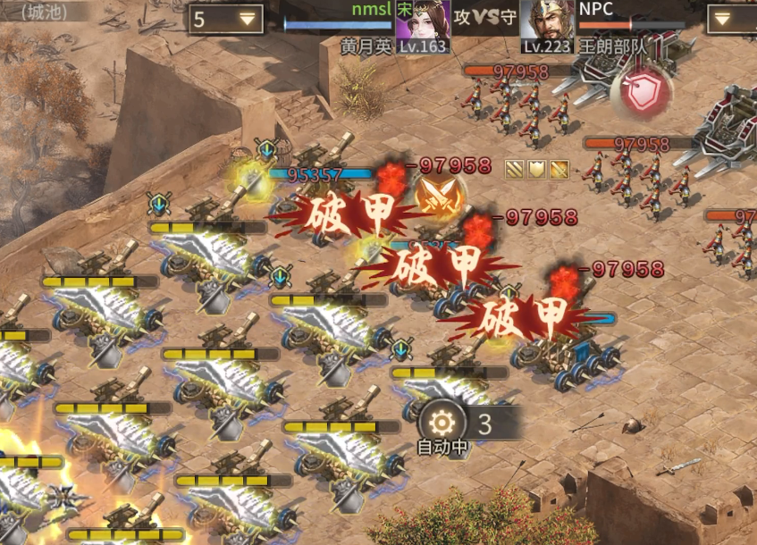 司马懿作为首发武将,能够直接反制第一个敌方武将的战法,同时携带火车状态可以在前四排战斗中保持优势。理想情况下,司马懿应当将敌方NPC打到仅剩2格护甲,为后续武将创造输出空间。关羽出场时使用战法能够有效削弱第二武将的前排和最后一排护甲,这个时机需要精准把握。黄月英在遇到敌方NPC准备释放砸石头技能时,及时使用战法可以避免一次对撞机会。