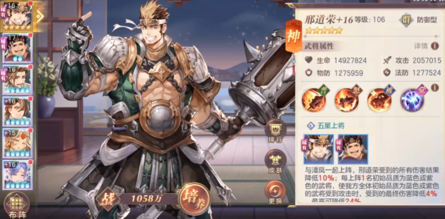 邢道荣在奇境之旅中是个比较难缠的对手,他的反弹伤害和减伤机制让不少小伙伴头疼。要搞定他,首先得选对阵容,推荐使用潘凤+邢道荣+诸葛亮+张辽+荀彧+华佗的组合,这套阵容能很好应对他的反弹特性。洪荒济世葫、和氏璧和太凰射日弓这三件神器记得带上,能大幅提升生存和输出能力。