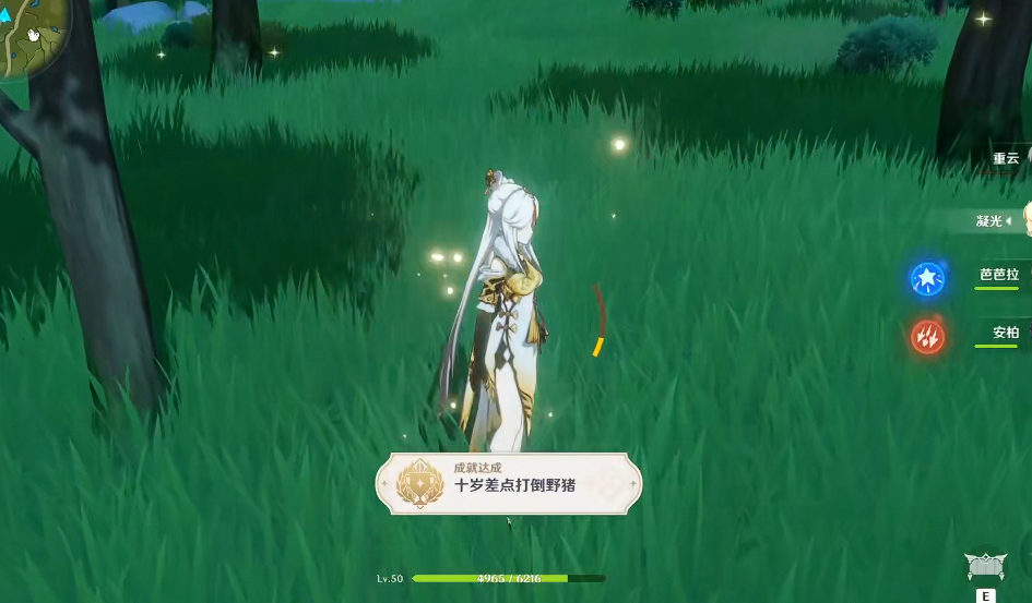 解锁十岁差点打倒野猪成就需要玩家被野猪撞击致死。该成就的触发条件较为特殊,需通过控制角色血量与特定操作实现。首先需将角色生命值降至极低水平,建议通过高处坠落或战斗受伤后,使用奇怪的提瓦特煎蛋复活,使血量仅恢复至150点左右。角色处于脆弱状态,便于野猪一击致命。