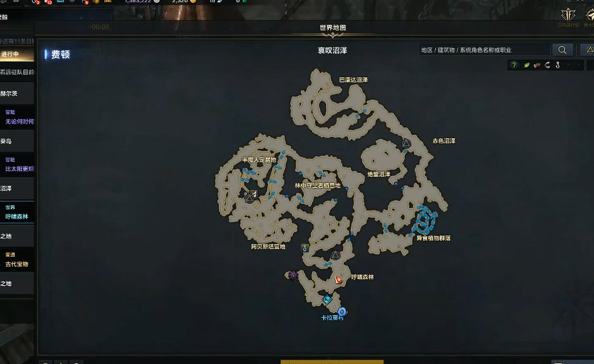 哀叹沼泽位于失落的方舟大陆的西南方向,具体坐标大约在80,60附近。这一区域被茂密的森林和沼泽地环绕,常年弥漫着浓雾,视线受阻严重,地形辨识度较低。寻找时需要提前规划路线并标记沿途参照物,例如独特的树木或岩石结构。从卡拉扎村出发,可通过购买或解锁区域地图导航至目标点,建议优先完成前置任务以激活传送点。