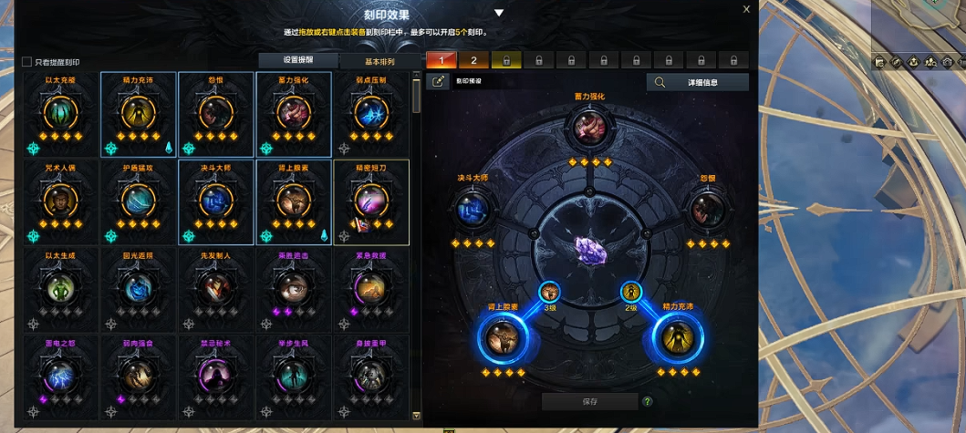 职业铭刻方面战斗姿态1级就够用,它能增强普通技能伤害和防御姿态效果。其他铭刻优先选怨恨3、拦路虎3、精气吸收3,性价比很高。如果预算充足可以补肾上腺素3或稳超胜券3,但蓝督军的刻印首饰普遍便宜,成型难度低。宝石推荐先把所有蓝色技能的冷却缩减堆满,特别是仇恨呐喊这个关键技能,之后再考虑技能伤害宝石,五级宝石就能满足大部分场景需求。