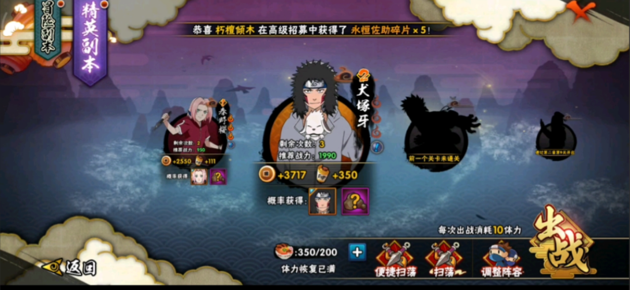 那么进阶和强化需要的海量材料最主要的来源就是每天去挑战各种副本。普通的冒险副本和精英副本会掉落像地之卷、天之卷这类基础材料,记得用扫荡功能会省事很多。游戏里的一些日常活动,比如丰饶之间、秘境探险,还有像佩恩入侵这样的团队副本,也是获取高级材料甚至成品忍具的好地方。特别是秘境探险,通关后的翻牌有机会直接拿到不错的忍具,每天的前三次挑战奖励还会更丰厚一些。所以每天上线记得把这些该刷的次数都刷完,体力也要规划好,尽量别浪费了。