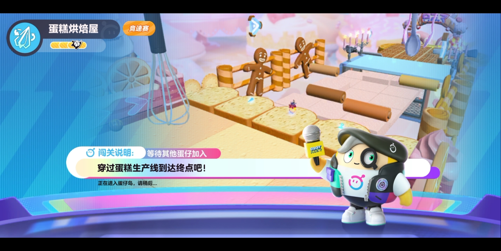 竞速赛的核心在于提升自己的前进速度还有阻碍其他玩家的前进速度,这样才能让自己更快地到达终点。因此在比赛开始后可以利用机关和地形以及自己的技能来干扰别人,比如玩家走到地图边缘时可以通过飞扑再往后转回来把别人撞下平台。但是这种方法只适用于老玩家,新手还是致力于提升自己的速度,因为如果干扰的时机不对只会影响到自己的速度。如果自己走在前面就不要想着去干扰别人了,这时你的目标在于全速前进以快速到达终点。如果在队伍的后方则可以使用捡到的道具来减缓前面玩家的进度。