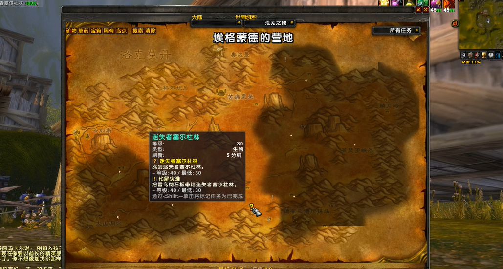 联盟玩家则从铁炉堡的葛利·硬骨那里获得任务线索,同样需要远赴荒芜之地。尽管起始点不同,但双方玩家的最终目的地是一致的。在抵达荒芜之地后,玩家需要前往一个被称为埃格蒙德的营地的地点。根据多个信息源的确认,迷失者塞尔杜林就位于这个营地之中。他的具体位置坐标在荒芜之地地图上约为(51.4, 76),该坐标点位于地图的中南部区域。埃格蒙德的营地是荒芜之地的一个小型据点或营地标识,到达该区域后稍加寻找便能发现这位NPC。