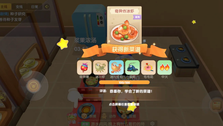 所有食材的获取途径是完成这道菜的关键。奇异果和毛毛花属于种植作物,玩家需要达到相应等级后,在梅森的种子商店购买种子进行种植,待其成熟后即可收获,也可以前往已种植这些作物的好友家园进行采摘。冰川虾和冰川红虾均为水产,只能在摩尔拉雅雪山的鱼池中通过垂钓获得,它们全天都会出现,使用中级或高级鱼饵可以提高钓获的概率。鳌虾则需要在夜晚时分,在家园池塘或雪山鱼池中进行垂钓才能获取。