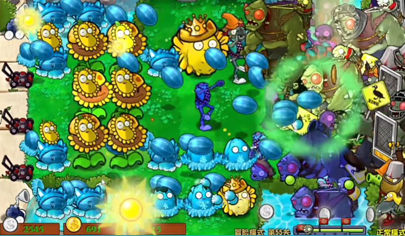 进入游戏中期,僵尸波次增强和种类增多,你的布局重点应转向构建立体火力网和巩固防线。在持续补充阳光向日葵的同时,开始在水池区域和陆地的中后排部署寒冰西瓜猫蒲等强力输出植物,它们能造成范围伤害并叠加减速。为了保护好这些核心输出单位以及后方的阳光生产线,必须在阵线前方种植寒冰坚果或冰冻坚果,它们能有效吸收伤害并延缓僵尸推进速度。当遭遇成群的舞王僵尸时,其召唤的伴舞僵尸会造成额外压力,此时可以利用阳光炸弹或精灵菇等范围伤害手段进行清理。