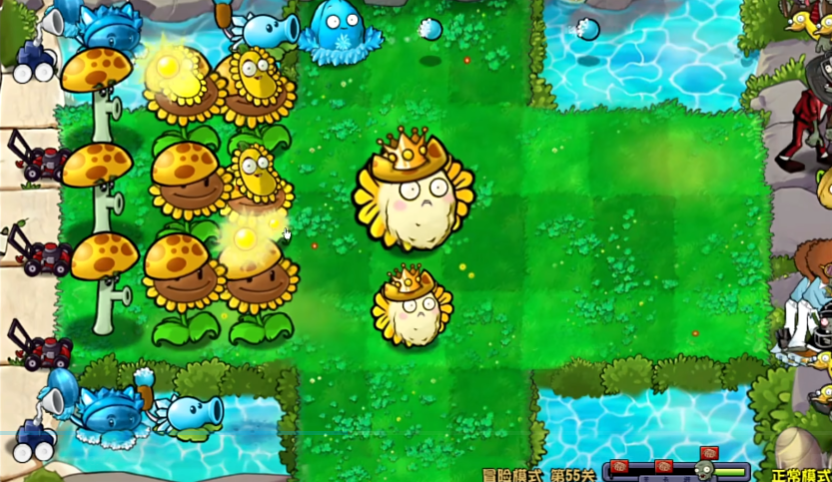 开局阶段的核心任务是快速建立稳定的阳光经济,为后续的防御和进攻体系打下基础。游戏开始后,应优先在中间区域的草坪上种植数个阳光向日葵,并立即使用成长咖啡豆使其迅速产光,这是本关阳光的主要来源。第一批僵尸会很快出现,你需要在水池的左上角或关键路径上放置寒冰香蒲,这种植物能自动追踪并攻击全屏僵尸,同时附带减速效果,为你的初期布防争取宝贵时间。这个阶段的防守相对宽松,但务必确保阳光生产不被中断。