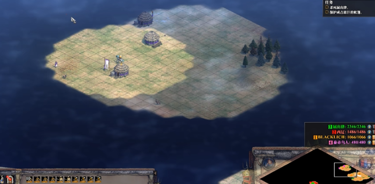 核心目标是击杀叛徒屈出律,同时保护己方的世界奇观不被摧毁。你的初始兵力有限,包括轻骑兵、骑射手和骆驼兵,资源也较为紧张,人口上限为125且时代被限制在城堡时代。敌人西辽会主动发起进攻,因此快速建立防御和发展经济是通关的基础。