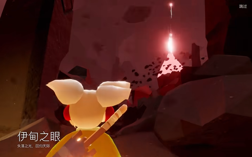 顺利通过暴风眼的前段路途后,你将抵达一处山顶平台,并进入名为伊甸之眼的核心献祭区域。这里根据危险程度被分为两部分:第一部分有规律的间歇性红石雨,周围分布着许多可以点亮的石灯,建议先点亮石灯补充能量,再去靠近那些等待救赎的石头人先祖进行献祭。当石头人身上泛起蓝光,就说明你已经成功献祭了一个光之翼,然后借助红石雨停歇的间隙快速移动到下一个石灯和石头人处。