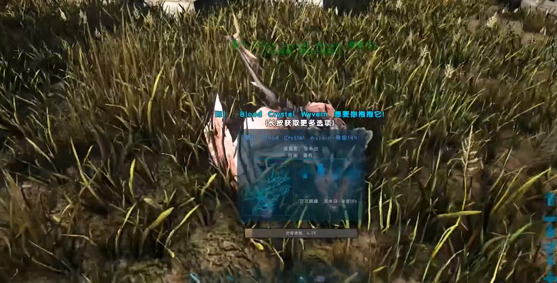 成功困住洪荒龙后,需使用复合弓连续发射麻醉箭以累积其眩晕值,直至目标彻底昏迷。使用麻醉箭或麻醉弹将生物击晕是常规驯化方法之一。击晕后需立刻用木制拒马等设施将其围住,以防其他肉食恐龙干扰驯服过程。此时应立即将嘉年华蛋或生肉放入其物品栏,启动进食。只需放入背包即可,切勿强制喂食。
