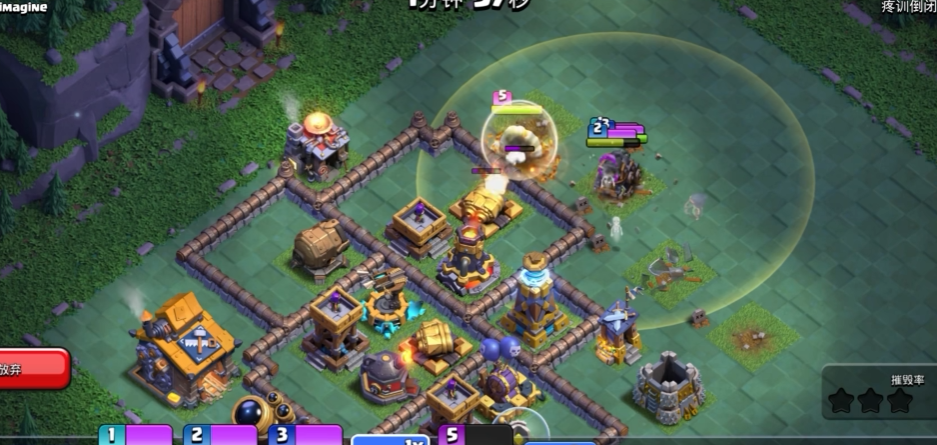 法术使用是狗球流打出伤害的关键,气球进入防空密集区域时释放狂暴法术,提升气球攻速与伤害,快速拆除防空火箭;面对分散阵型或需要快速转场时,用急速法术让气球提速,跨越陷阱区域与防御盲区;遇到高威胁单体防御或敌方英雄开启技能时,及时冰冻控制,保障气球生存。永王技能留到气球进入核心区域、血量较低时开启,群体护盾可大幅提升气球存活率,避免被连锁防御瞬间团灭,全程避免法术过早或过晚释放,确保每瓶法术都作用于关键防御与主力部队。