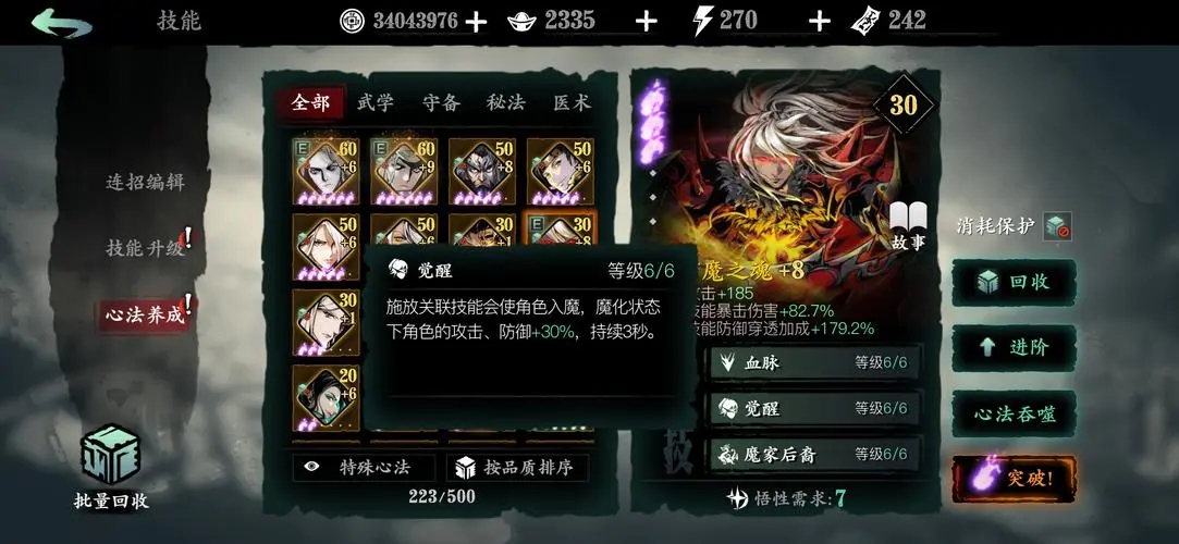 副心法搭配围绕暴击与增伤展开,优先选择孤峰、碧色双刃提升暴击伤害,诛邪作为平民替代补充暴击面板,避免单纯堆攻击导致伤害稀释。养成资源分配上,鲤鱼第一绝技拉满优先级最高,火属性增伤与暴击率加成对全流派输出提升显著,紫二火解锁绝技三后续伤害强化后即可停手,多余资源转向魔堡故人与万魔之魂突破,这套搭配兼顾刷图效率与副本攻坚,无论是小怪清理还是BOSS战爆发都能保持稳定输出,适配绝大多数近战输出流派。