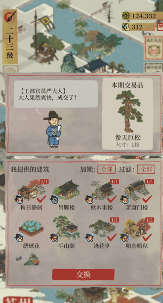 珍宝馆解锁后,单馆提供固定繁荣度,多馆叠加能快速提升城市繁荣等级,解锁更多城市功能与地块,还能产出严值,严值是和严大人兑换稀有建筑、补天石、金画轴的核心道具,单个珍宝馆产出稳定,多馆布局可大幅提升兑换效率,不用再靠重复建造低价值建筑凑兑换物,节省大量铜钱与建造时间。它还能收纳闲置珍宝,避免背包拥挤,放入的珍宝会提供对应属性加成,覆盖农牧、制作、建造、理财、探险全维度,不用频繁切换角色装备,直接提升对应工作效率,比如理财类珍宝放入后,税课司、书局收益稳步提升,建造类珍宝则减少各类建筑的建造时长,适配多线经营节奏。