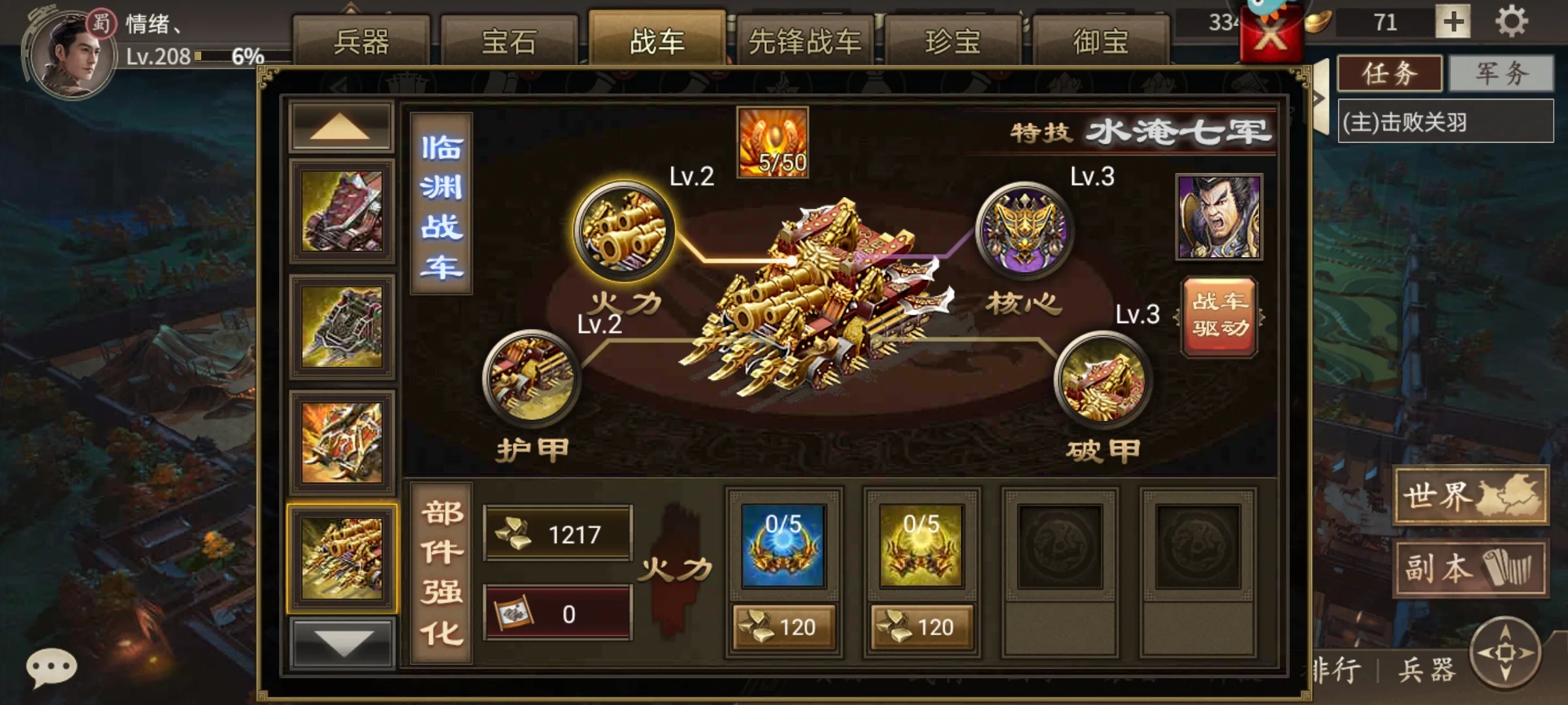 战斗细节与资源配置直接影响通关成功率,战车需全部升满阶级,车头与车尾属性拉满,优先强化五车与一车的攻防属性,保证核心输出位战车强度。副本全程禁止自动战斗,所有战法必须手动释放,关羽、南中之主的战法要等敌方破甲后释放,曹操战法留到周泰上阵前释放,周泰全程保持防御姿态,避免无谓损耗。多次尝试时注意触发幸运模式,连续斩杀可大幅降低通关难度,若某一环节失利,及时调整御宝搭配与战法释放顺序,优化阵容衔接节奏。