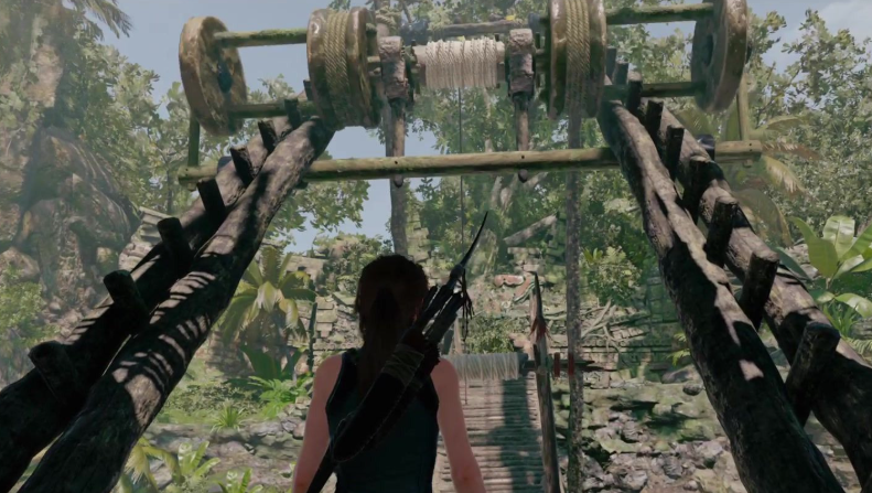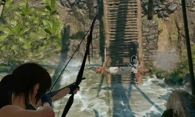 完成对水利机关的调节后,接下来的关键步骤是使用绳索箭矢。劳拉需要移动到合适的位置,通常是在降下的绳桩附近,使用弓箭瞄准断桥对岸另一个固定的绳桩或结构。当准星对准时,游戏会给出提示,射出带有绳索的箭矢即可在两处之间建立起一条坚固的绳索连接。这条连接会拉动桥面或使断裂的桥体部分升起,从而形成一条可以通行的临时通路。这里需要注意,部分机关存在时间限制,水流导入后如果操作耗时过长,容器可能会漏水导致机关复位,因此动作需迅速准确。