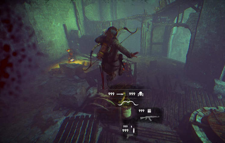 水位上涨后,劳拉需要游到岸边,并再次清理一波敌人。之后前往第二层,使用相同的绳箭连接方法,利用该层的矿井对女巫进行第三次攻击。完成后,沿着场景一侧的缆绳滑降至下层区域。在此区域,需要解开一个环境谜题:操作机关后,水中会升起三个可供跳跃的浮动平台。利用这些平台跳至第四个矿井所在位置,该处的启动机关位于下层,需要先启动它才能使用矿井。再次使用绳箭将女巫连接至转轴,完成第四次灼烧。
