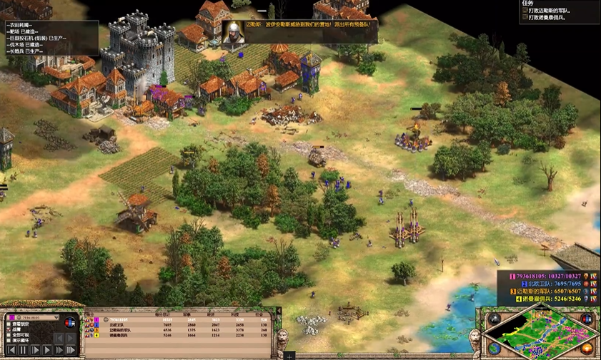 黑暗时代开局需最大化初始村民优势,虽食物与木材储备较少,但额外村民可快速铺开资源采集,优先派侦察骑兵定位羊群、浆果丛与野猪,将多数村民投入食物采集,保证城镇中心不间断生产村民,城镇中心支持15人口的特性可延迟建造住房,节省早期木材消耗,新村民按食物、木材、金矿的顺序有序分配,快速积累升级封建时代的资源,避免人口卡顿与资源断档,为快速升封建打下基础。